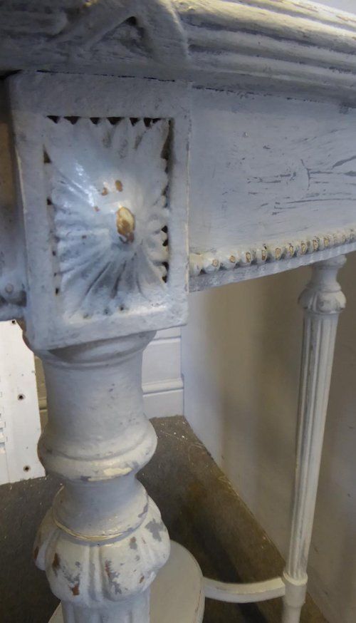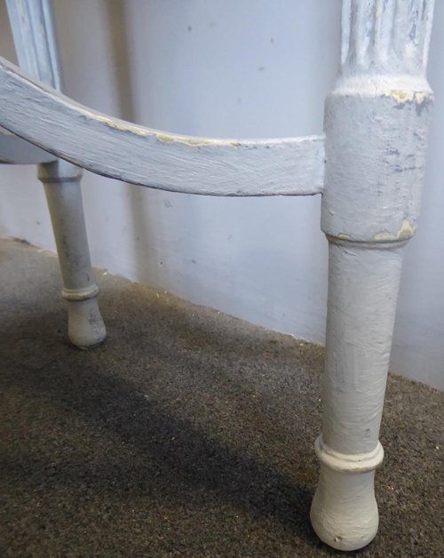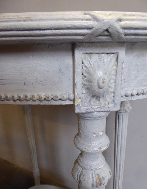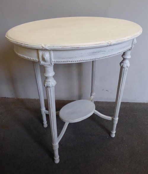 Ref 7953 - Worn grey painted vintage Louis XV style French oval table. Circa 1930.