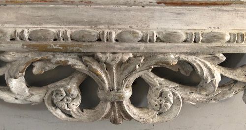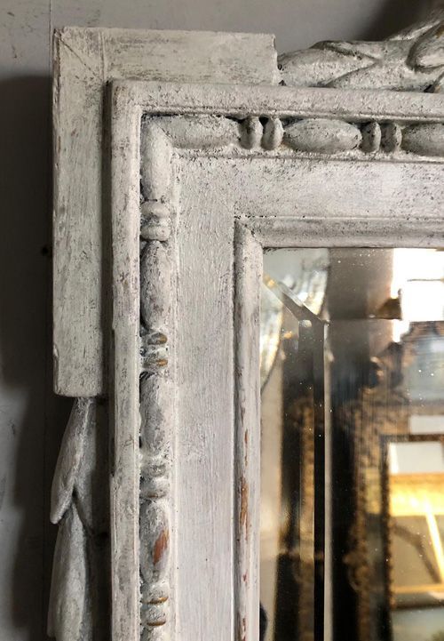 Ref 8232 - Antique French Mirror - Worn grey painted Louis XVI double crested antique mirror. Original bevelled glass. Original pine board back. Circa 1890.