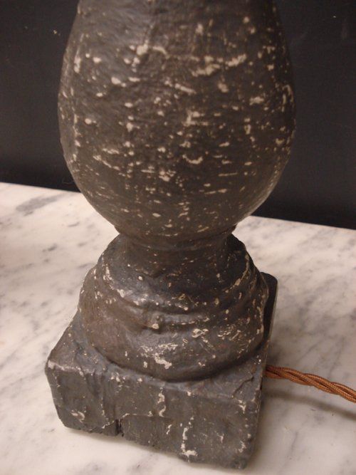 Ref 3664 - Pair of distressed dark grey over white painted wooden 19th Century balusters converted to lamp bases. All new fittings and wire with in-line switch. Need a plug, bulb and shade.
