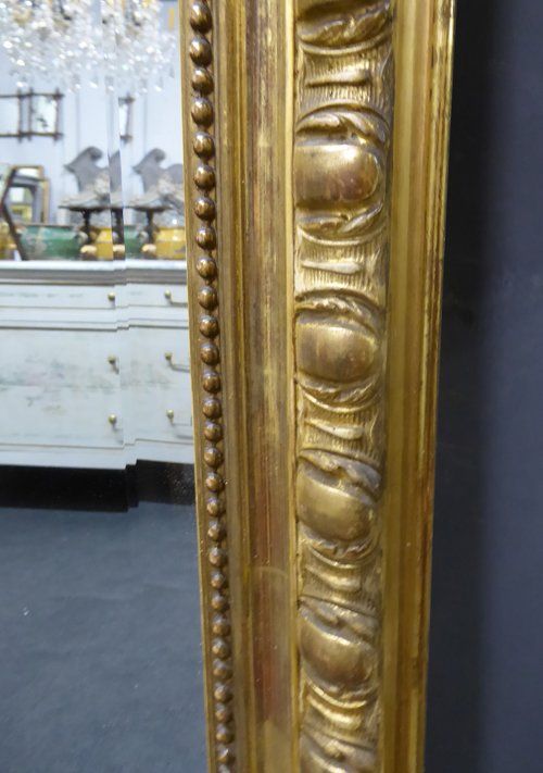 Ref 6711 - Antique French Mirror - Gilt on red crested Napoleon III antique mirror with gesso decoration to frame. Original bevelled glass. Original pine board back. Circa 1870.