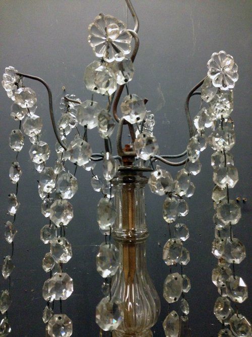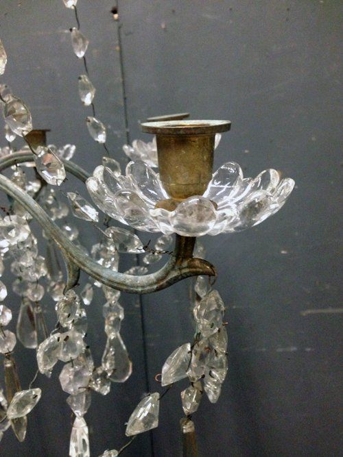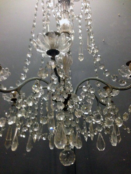 Ref 6744 - 6 arm Napoleon III brass antique French chandelier with original clear crystals. For candles or can be wired. Circa 1860.