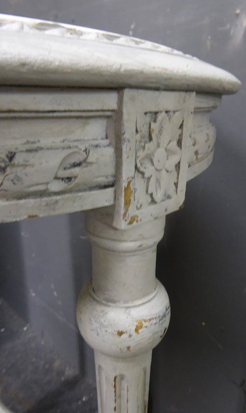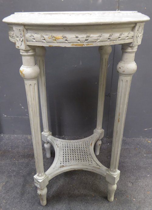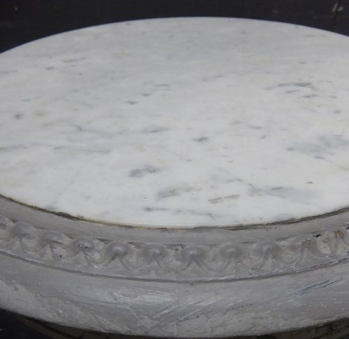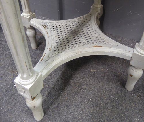 Ref 6899 - Worn grey painted round French antique side table with original marble top and cane panel. Circa 1900.
