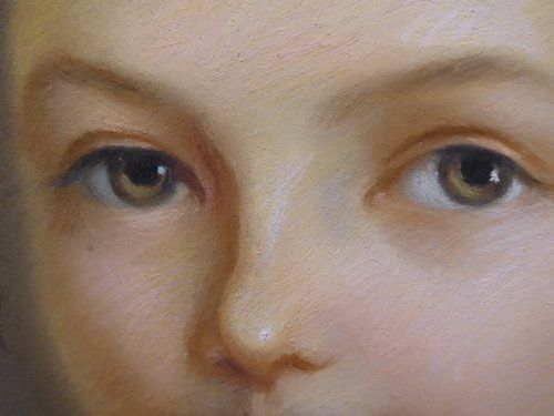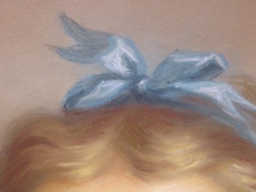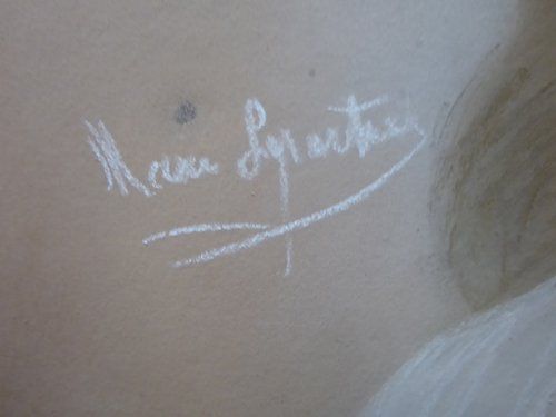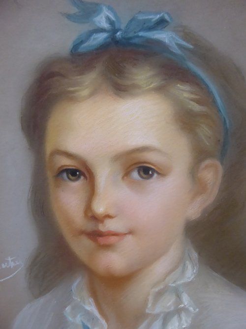Ref 6900A - Antique French pastel on canvas portrait on original wooden stretcher. Signed(see close-up). Circa 1900.