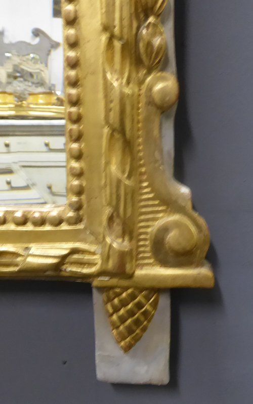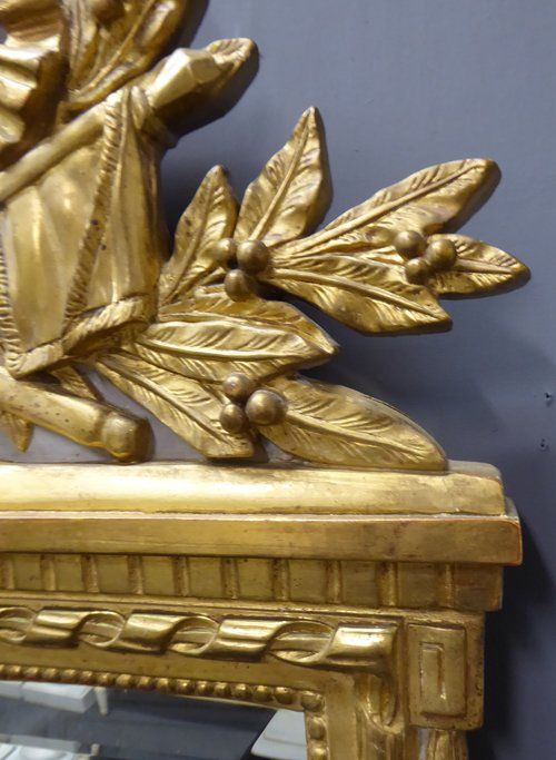 Ref 6902 - Antique French Mirror - 18th century gilt on red Louis XVI giltwood crested antique mirror. Bevelled glass replaced in 19th Century. Original board back. Circa 1790.