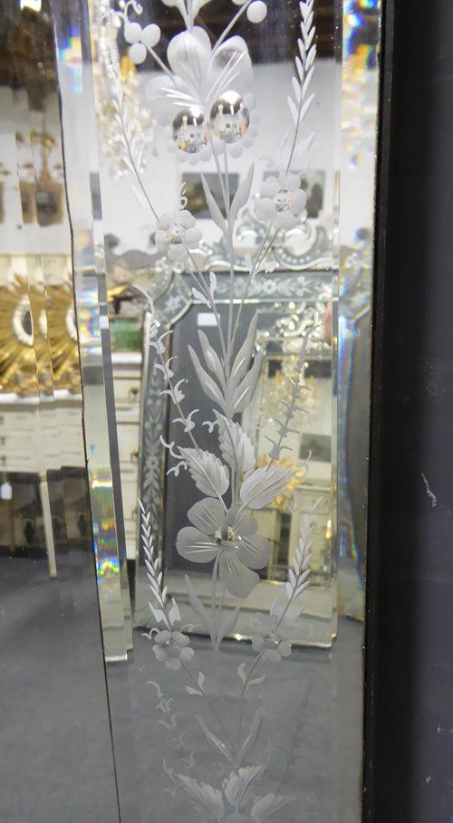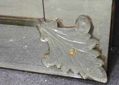 Ref 6937 - Antique Venetian Mirror - Large 19th Century crested Venetian antique mirror with reverse etched decoration to crest and outer margins. Original glass with bevelled centre plate. Original thin metal back. Circa 1890.
