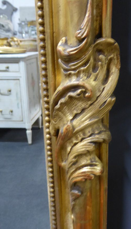 Ref 6938 - Antique French Mirror - Large gilt on red Louis XV style crested antique mirror. Original glass. Original pine board back. Circa 1880.