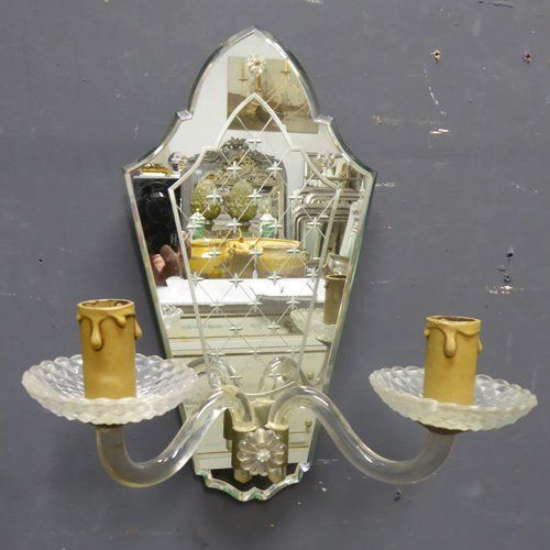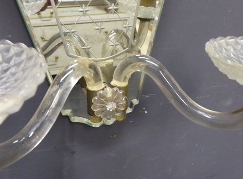 Ref 6942 - Pair of two arm Venetian wall lights with reverse etched decoration. Not wired. Circa 1950.
