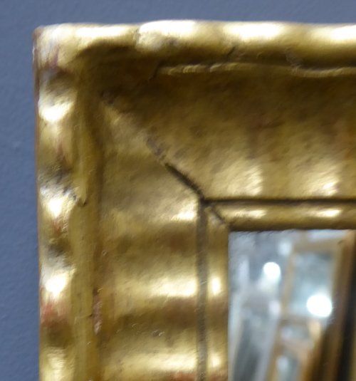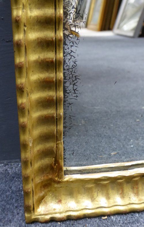 Ref 6958 - Antique French Mirror - Gilt on red ripple decorated landscape/portrait antique mirror. Original glass with some foxing and very fine surface scratches. Original pine board back. Circa 1860.