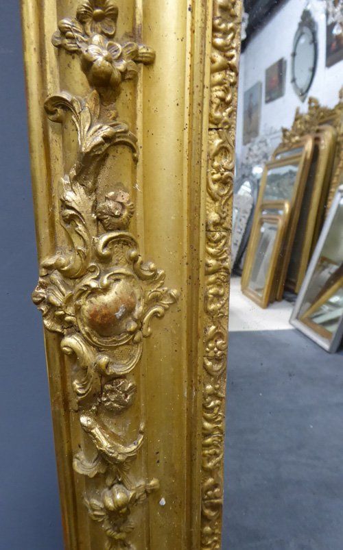 Ref 6969 - Antique French Mirror - Large gilt on red Restauration period landscape/portrait antique mirror. Original mercury glass with some patinated areas. Original pine board back. Circa 1830.