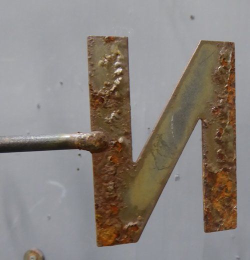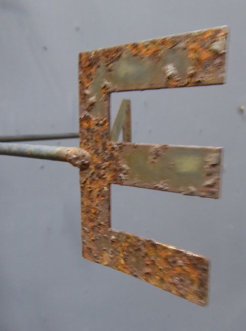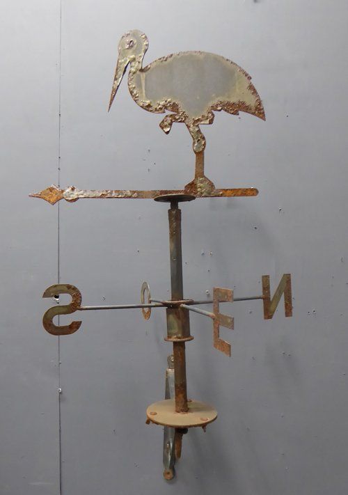 Ref 6974 - Old French wrought iron stork weather vane finished in original distressed dark green paint with rust patches. Circa 1950.