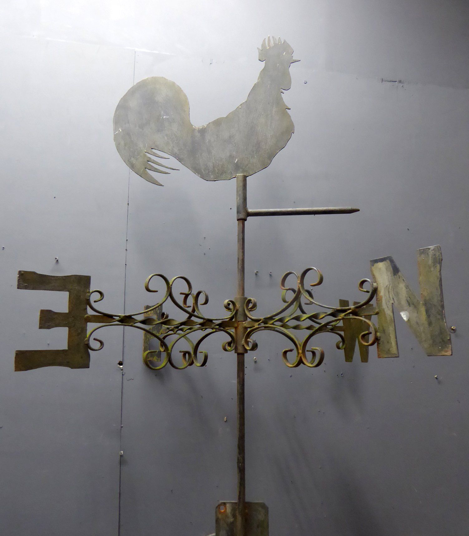 Ref 6985 - Old English cockerel weather vane finished in original weathered black paint. Circa 1950.