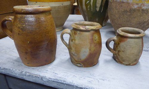 Ref 6997 - Set of three antique French glazed terracotta pots. Circa 1880.