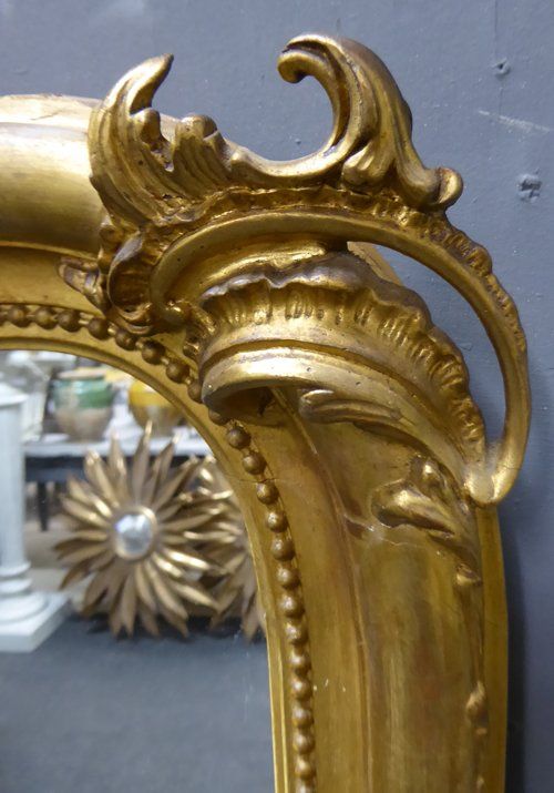 Ref 7001 - Antique French Mirror - Gilt on red Louis XV style camel crested antique mirror. New glass. Original pine board back. Circa 1890.