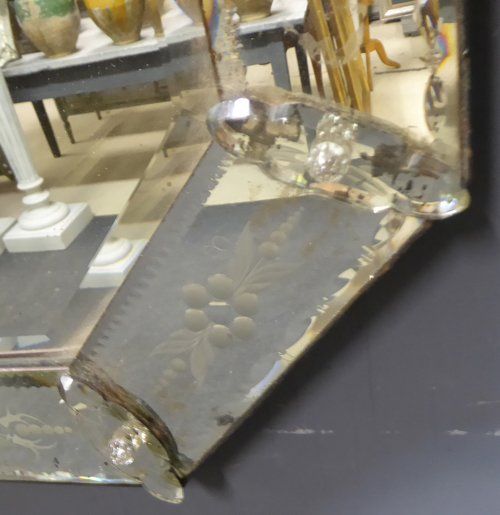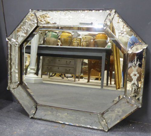 Ref 7018 - Antique Venetian Mirror - Octagonal landscape/portrait Venetian antique mirror. Original glass with bevelled centre plate. Original back. Circa 1900.