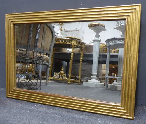 Ref 7099 - Antique French Mirror - Gilt on red period reeded Louis XVI antique mirror. Original faintly patinated mercury glass. Original pine board back. Some old, inactive and treated woodworm holes to back. Circa 1790.