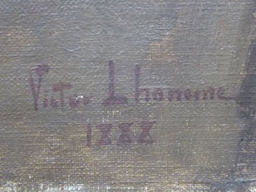 Ref 7138 - Antique French oil on canvas portrait of a man. Original wooden stretcher. Signed and dated Victor L Homme 1888.