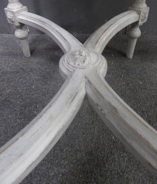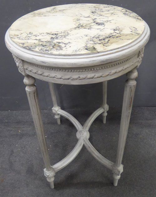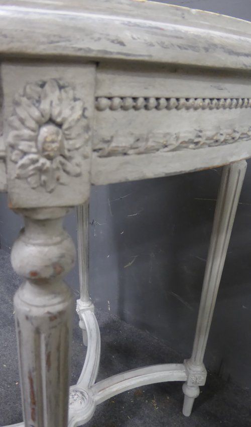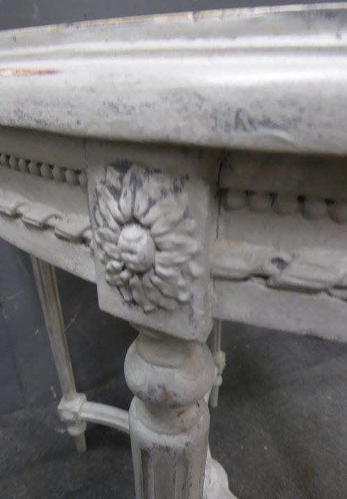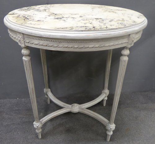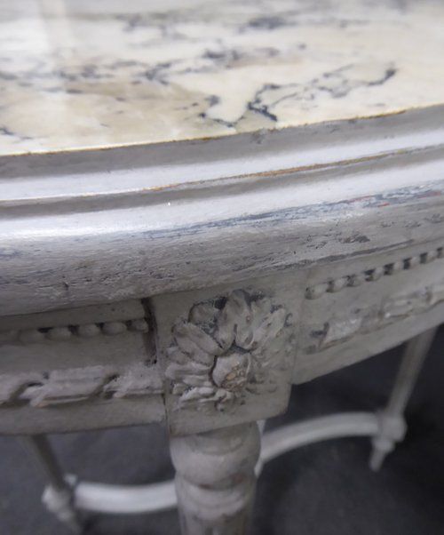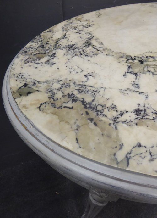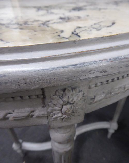 Ref 7184 - Worn grey painted antique French table with original marble top. Circa 1900.