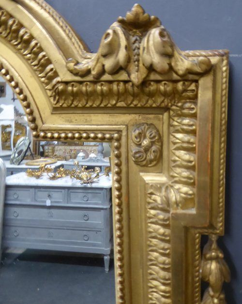 Ref 7186 - Antique French Mirror - Large gilt on red French crested antique mirror. Original glass with some small black patination spots. Original pine board back. Circa 1880.