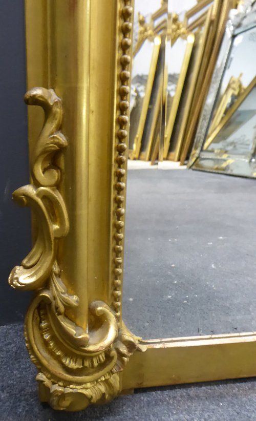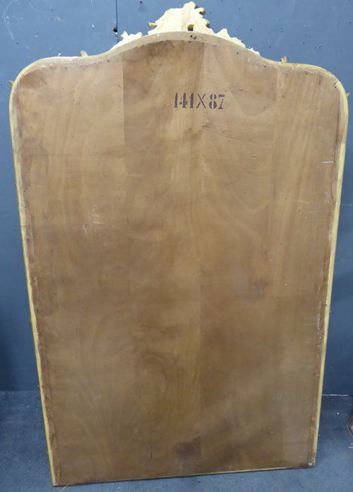 Ref 7226 - Antique French Mirror - Gilt on red Louis XV style camel crested antique mirror. Original bevelled glass. Original thin veneer back. Circa 1890.