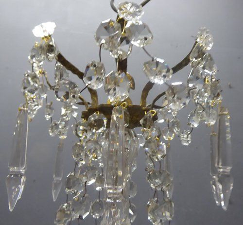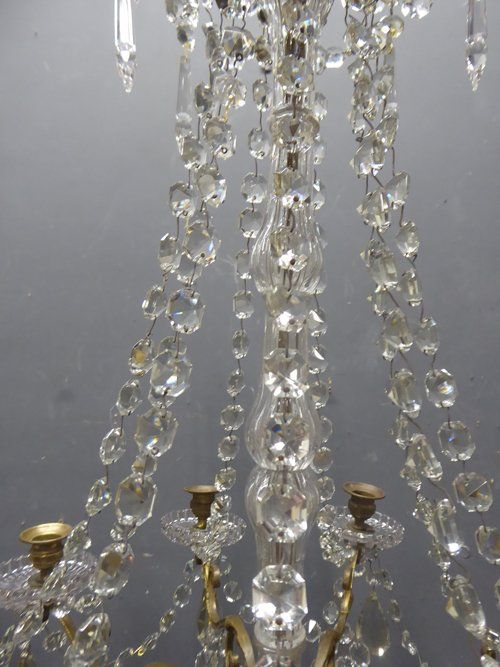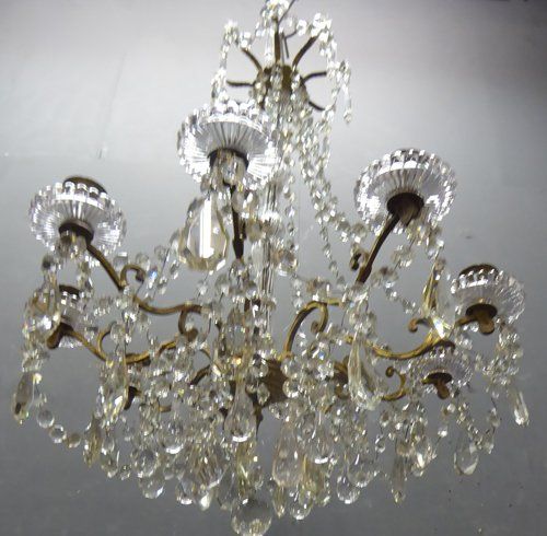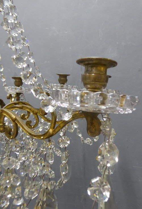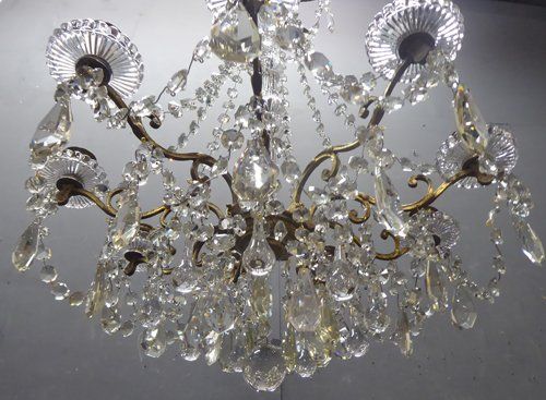 Ref 7255 - 9 arm patinated brass Napoleon III antique French chandelier with original clear crystals. For candles or can be wired. Circa 1860.