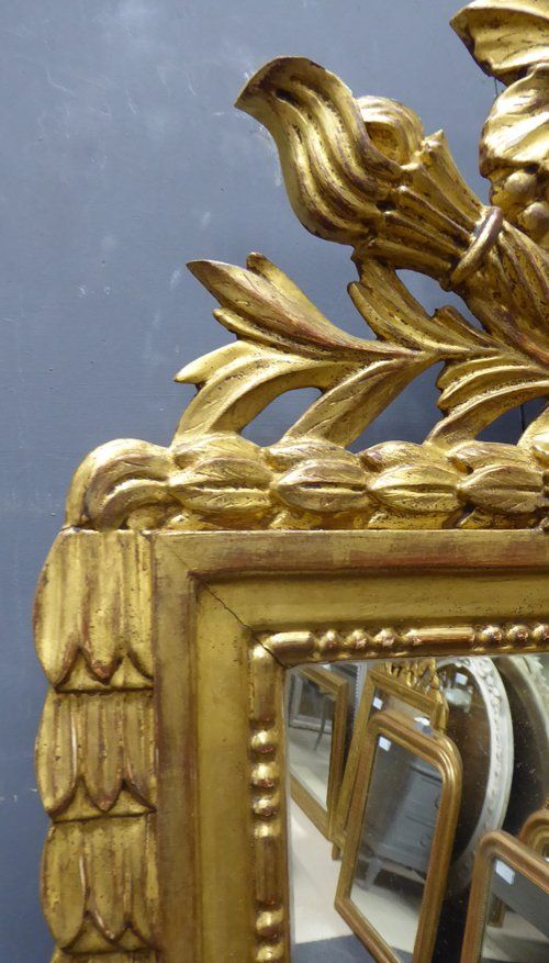 Ref 7284 - Carved giltwood Louis XVI style crested mirror. Original glass. Original back. Circa 1950.