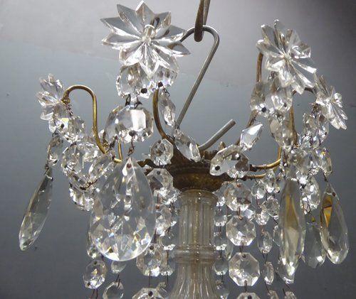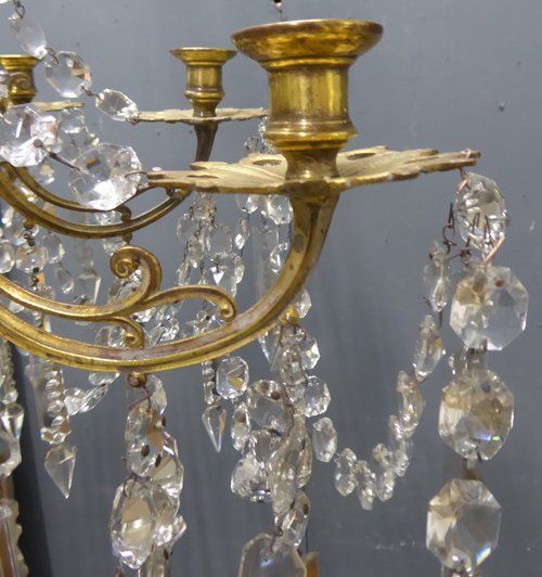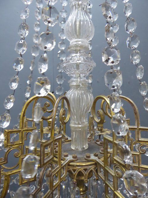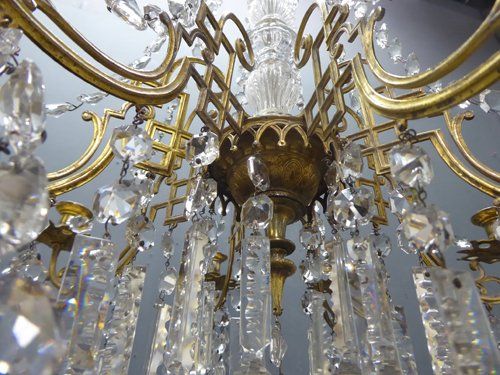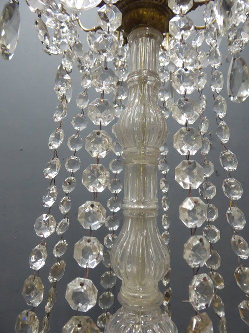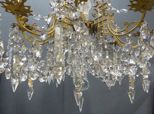 Ref 7289 - 8 arm brass Napoleon III antique French chandelier with original clear crystals. For candles or can be wired. Circa 1860.