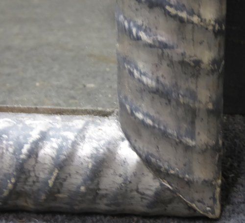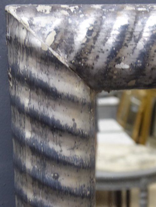 Ref 7297 - Antique French Mirror - Worn silver on black ripple decorated landscape/portrait French antique mirror. Original glass. Original pine board back. Circa 1850.