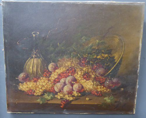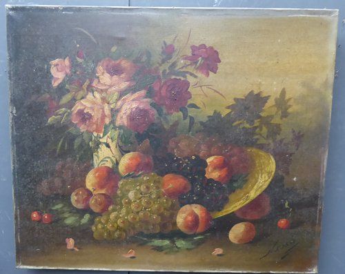 Ref 7300 - Pair of antique French still life oil on canvas paintings . Signed Nemo. Circa 1900.