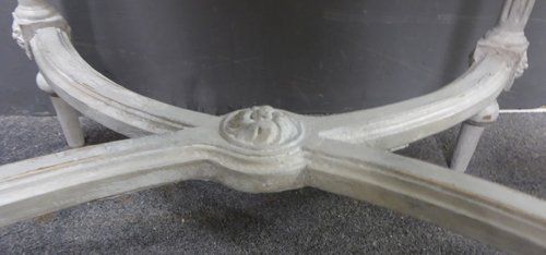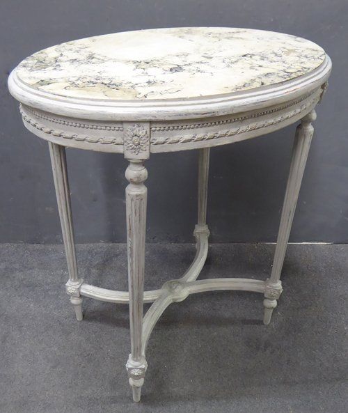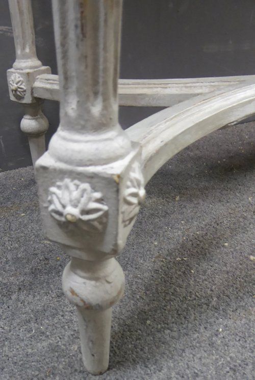 Ref 7308 - Worn grey painted antique French table with original marble top. Circa 1900.