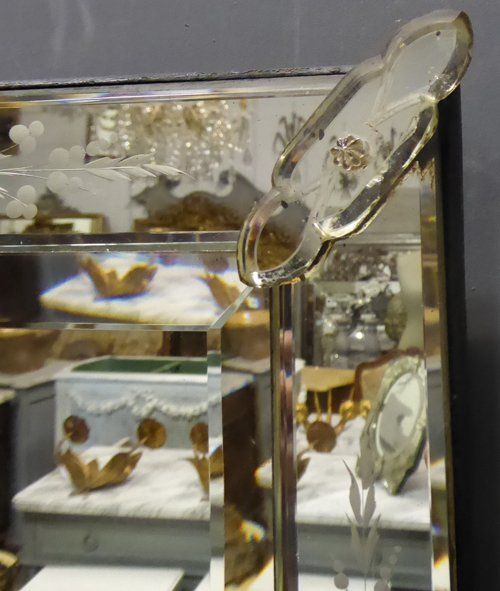 Ref 7309 - Antique Venetian Mirror - 19th Century Venetian antique mirror with reverse etched decoration to outer margins. Landscape/portrait. Original glass with bevelled centre plate. Circa 1890.