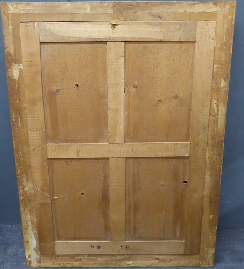 Ref 7322 - Antique French Mirror - Period gilt on red Restauration antique mirror with etched bands to frame and gesso decoration to corners. Landscape/portrait. Replaced 1880's brown backed glass. Original inset panelled back. Circa 1830.