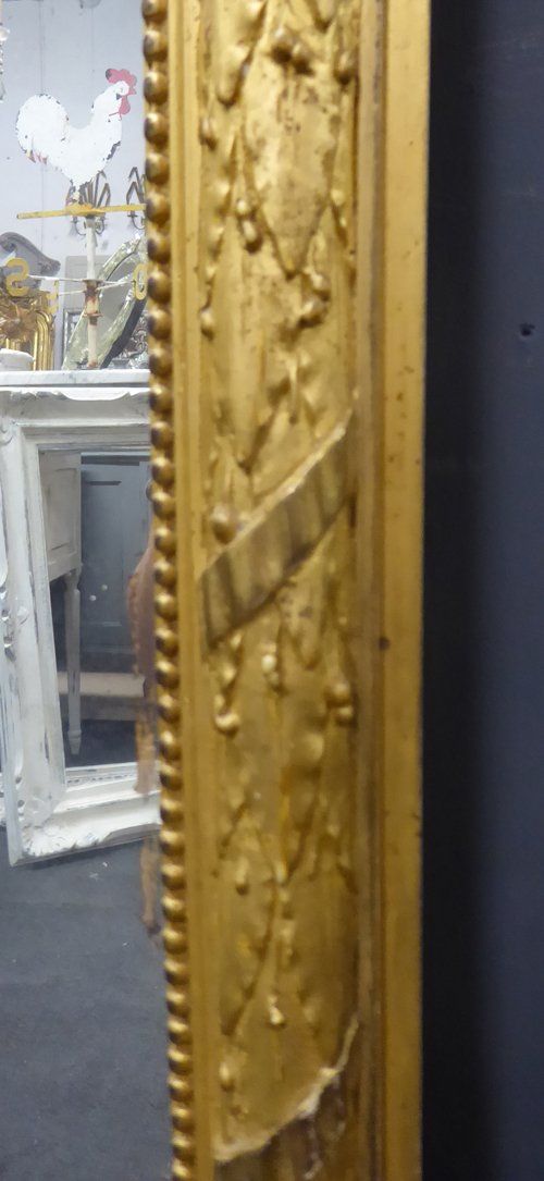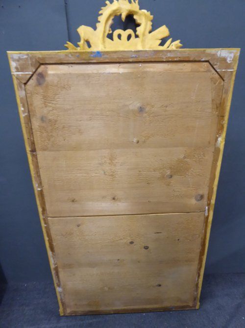 Ref 7328 - Antique French Mirror - Gilt on red crested French Louis XVI style antique mirror. Original patinated glass. Original pine board back. Circa 1860.