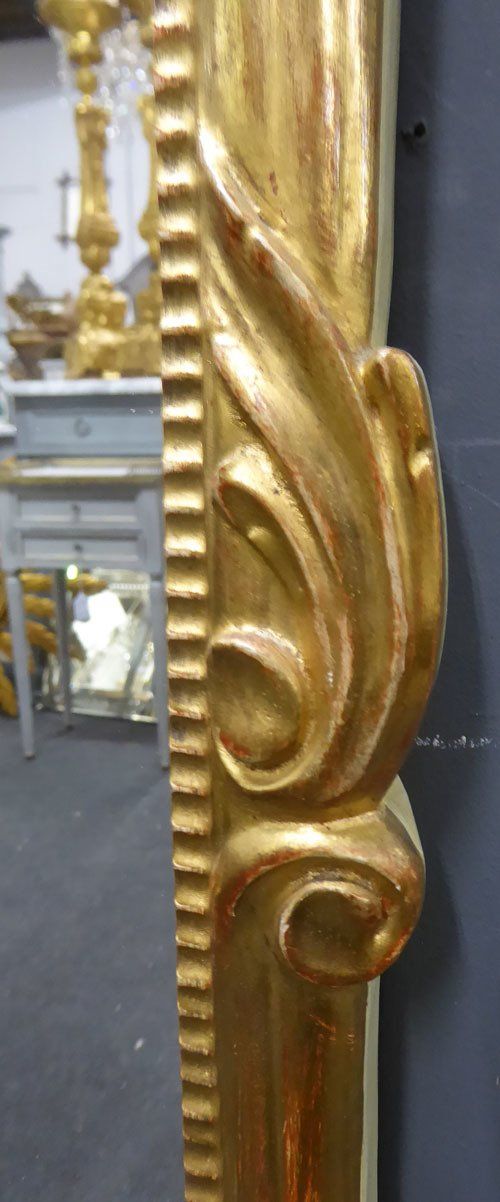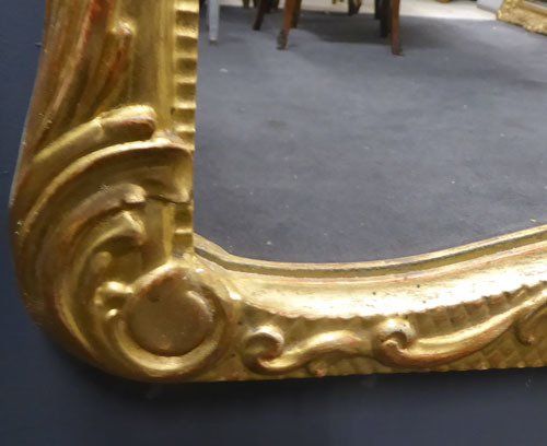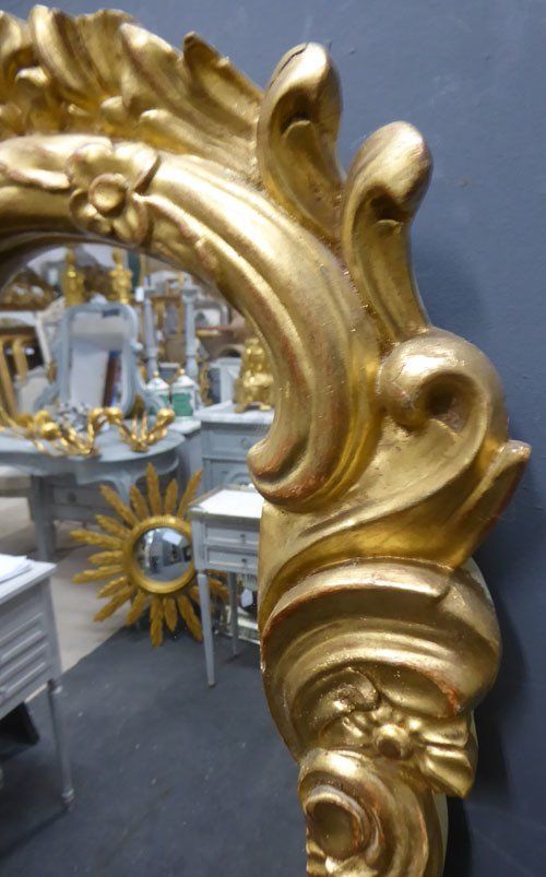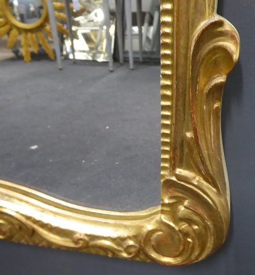 Ref 7345 - French carved giltwood Louis XV style crested mirror. Original glass. Original pine board back. Circa 1950.