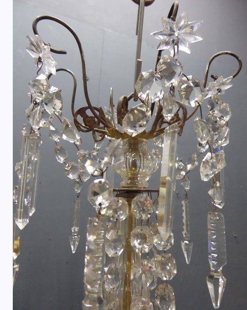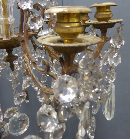 Ref 7346 - 19th Century 9 arm brass Napoleon III antique French chandelier with original clear crystals. For candles or can be wired. Circa 1860.