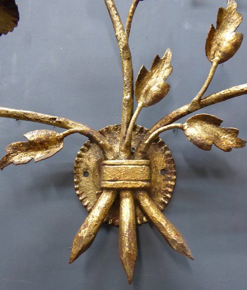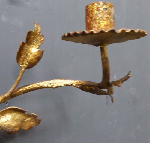 Ref 7354 - Pair of gilt painted metal two arm sconces. Circa 1950.