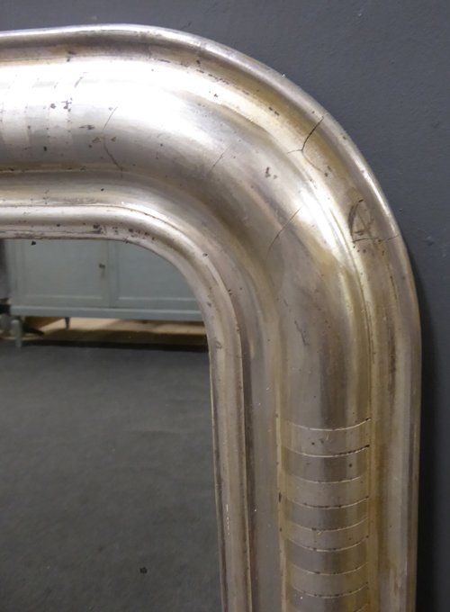 Ref 7380 - Antique French Mirror - Silver on black Louis Philippe antique mirror with line etching to frame. Original glass. Original pine board back. Circa 1860.