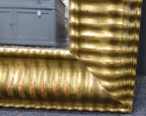Ref 7382 - Antique French Mirror - Period gilt on red ripple decorated landscape/portrait antique mirror. Original mercury glass with some small patinated areas and very faint surface scratches. Original pine board back. Circa 1830.