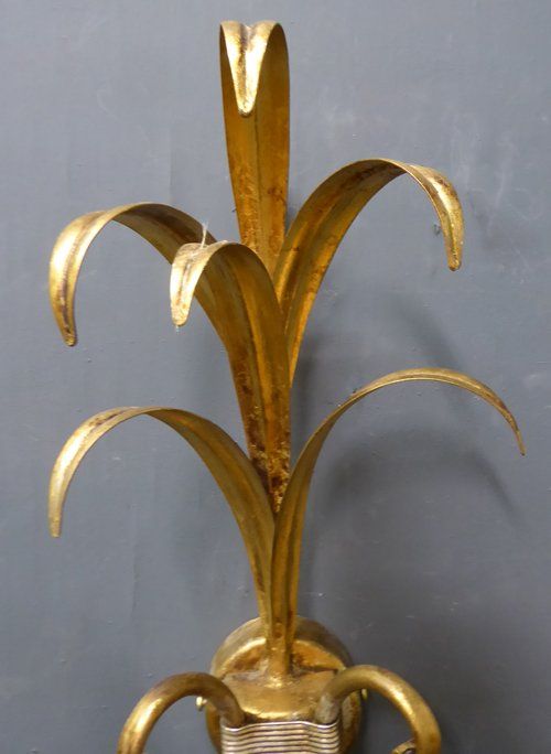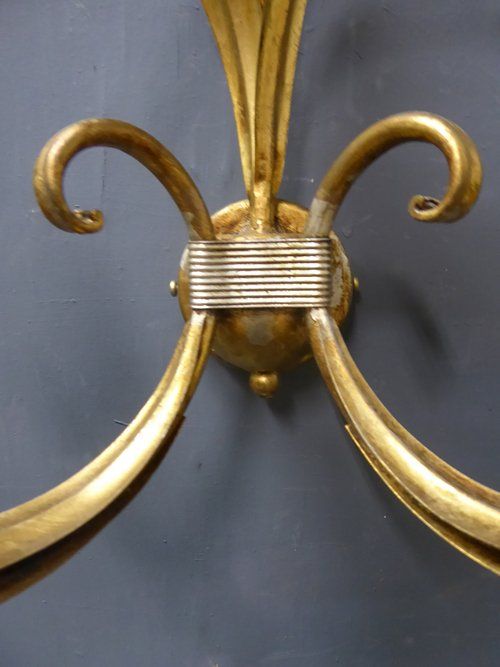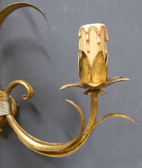 Ref 7388 - Pair of Italian gilt painted metal two arm wall lights. Good original wiring (needs checking). Circa 1970.