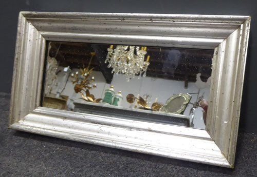 Ref 7419 - Antique French Mirror - Small silver on black Louis Philippe antique mirror fitted with mercury glass. Landscape/portrait. Old pine board back. Circa 1850.