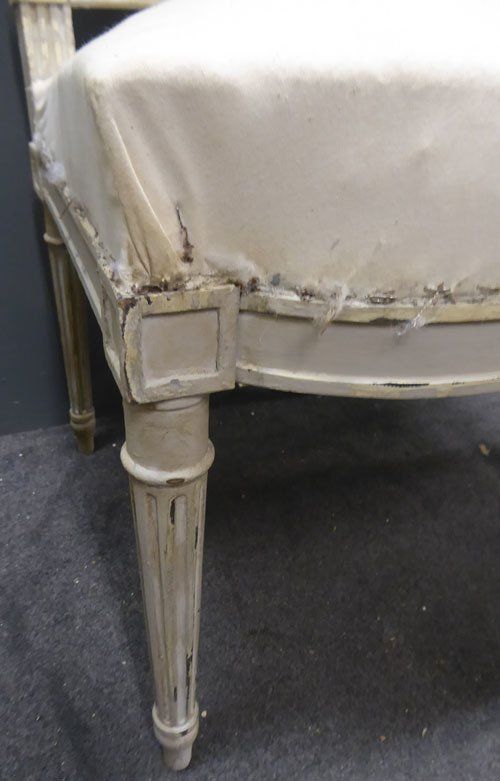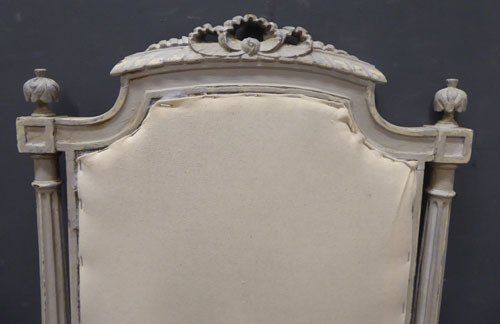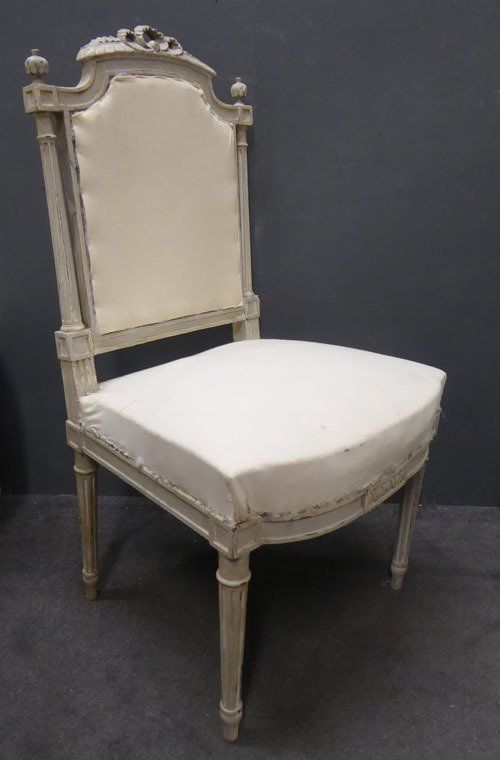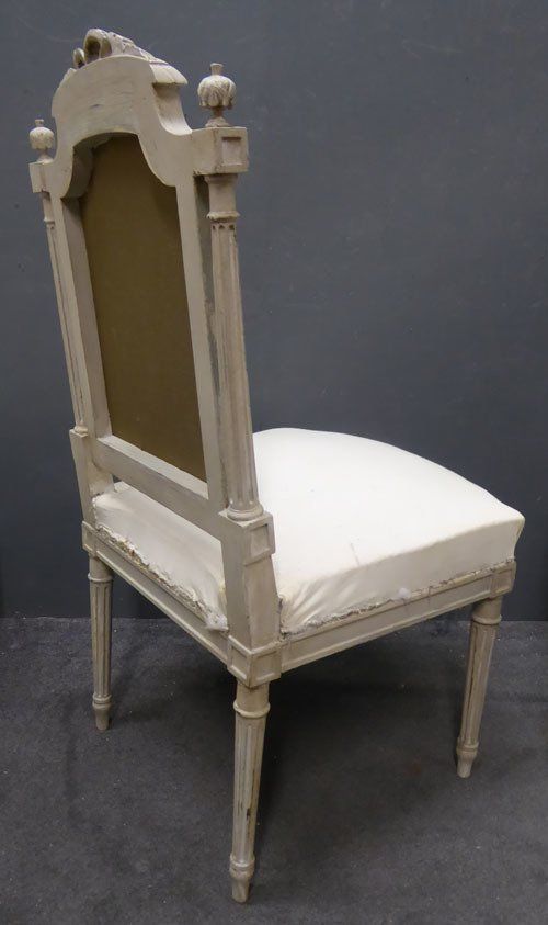 Ref 7433B - Pair of worn grey painted Louis XVI style antique French side chairs ready for recovering. Circa 1900.