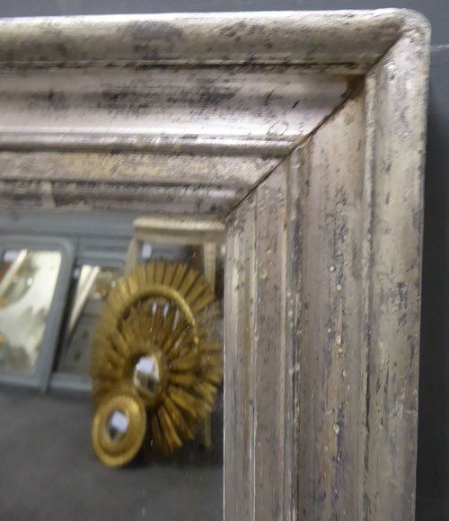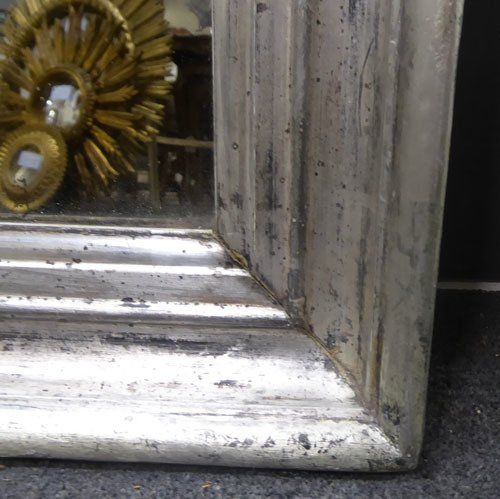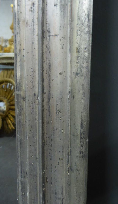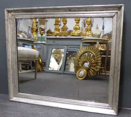 Ref 7442 - Antique French Mirror - Silver on black Louis Philippe period antique mirror. Landscape/portrait. Original mercury glass with some faint patination. Original pine board back. Circa 1840.
