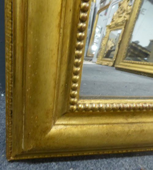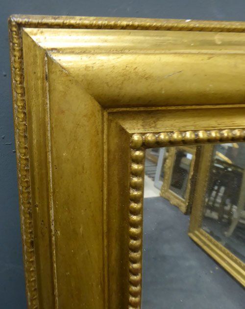 Ref 7445 - Antique French Mirror - Period gilt on red Louis Philippe antique mirror. Landscape/portrait. Original patinated mercury glass. Original pine board back. Circa 1840.