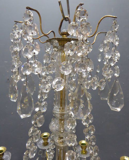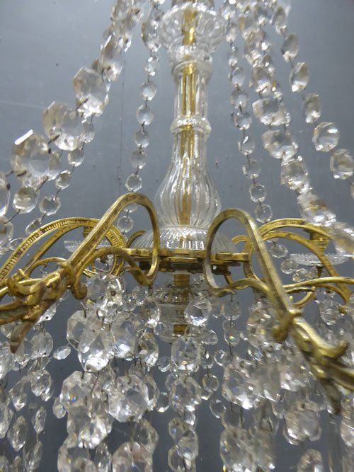 Ref 7447 - 19th Century 9 arm brass Napoleon III antique French chandelier with original clear crystals. For candles or can be wired. Circa 1860.