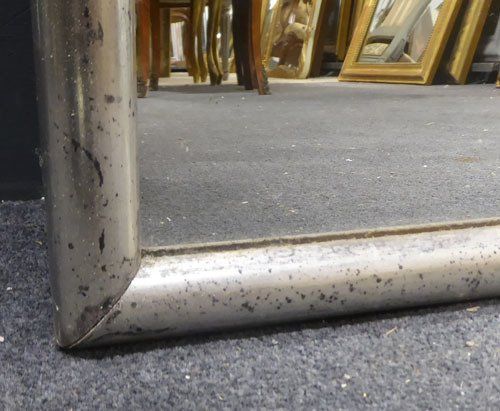 Ref 7490 - Antique French Mirror - Silver on black French antique bistro mirror. Landscape/portrait. Original glass. Original pine board back. Circa 1880.