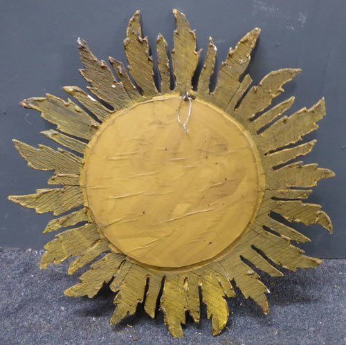 Ref 7492 - Carved giltwood sunburst mirror. Original glass. Circa 1950.
