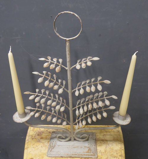 Ref 7493 - Vintage French painted metal candelabra with 2 arms. Circa 1930.