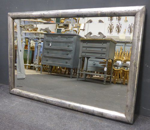 Ref 7520 - Antique French Mirror - Silver on black French antique bistro mirror. Landscape/portrait. Fitted with new bevelled glass. Original pine board back. Circa 1890.