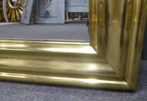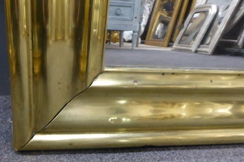 Ref 7521 - Antique French Mirror - Period brass bistro mirror. Landscape/portrait. Original mercury glass with some patination (see photo). Original pine board back with some old treated woodworm. Maker's stencil. Circa 1840.