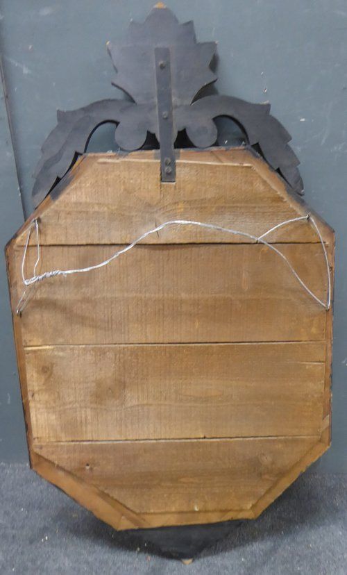 Ref 7522 - Antique Venetian Mirror - 19th Century octagonal crested Venetian antique mirror with reverse etched decoration to outer margins and crests. Original glass with bevelled centre plate. Original pine board back. Circa 1890.