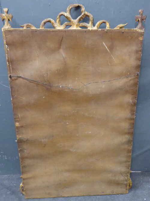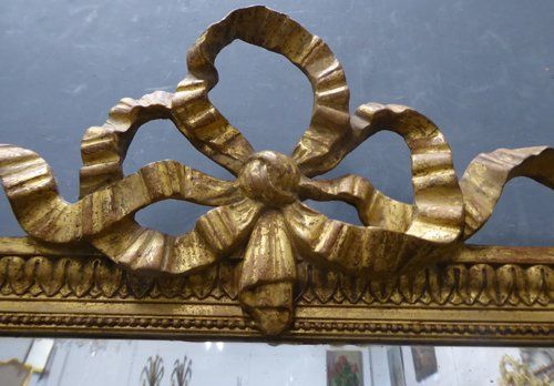 Ref 7544 - Antique French Mirror - Gilt on red ribbon crested antique mirror. Original lightly patinated bevelled glass. Original thin veneer back. Circa 1890.